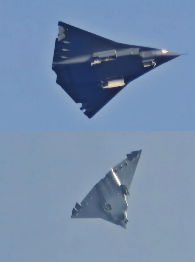 مهمترین چیزی که در نگاه اول به این هواپیما جلب توجه میکند، اندازه بزرگ و طراحی بدون دم آن است. بالهای آن شبیه حرف دلتای یونانی است، اما با تغییراتی که باعث بهبود عملکرد آن شده. بدنه آن هم کمی شبیه جنگنده J-20 است. دماغه پهن هواپیما شاید به اندازهای بزرگ باشد که دو خلبان بتوانند در کنار هم بنشینند، اما از روی تصاویر نمیتوانیم با اطمینان بگوییم که یک یا دو خلبان دارد.