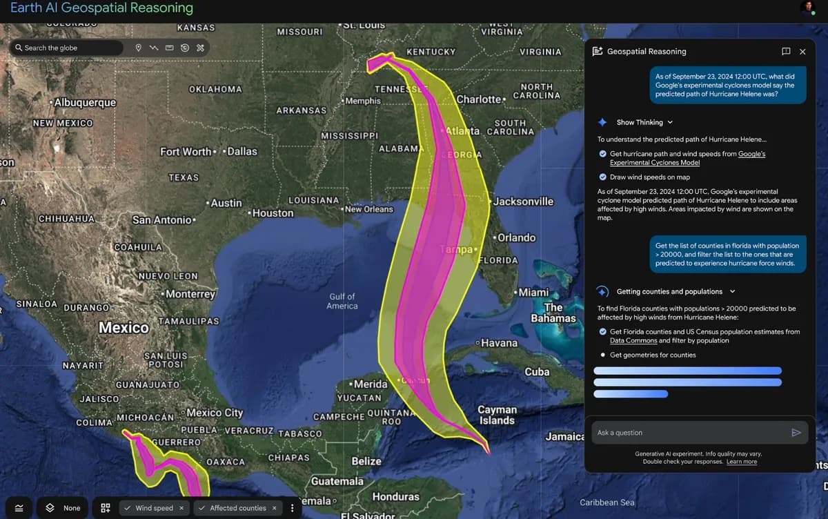 در قلب این بهروزرسانی، قابلیتی قرار دارد که گوگل آن را Geospatial Reasoning مینامد. این ویژگی در واقع لایهای تحلیلی است که به هوش مصنوعی اجازه میدهد میان دادههای مختلف زمین، مانند پیشبینیهای جوی، نقشههای جمعیتی و تصاویر ماهوارهای، ارتباط برقرار کند تا پاسخهایی جامعتر ارائه دهد.