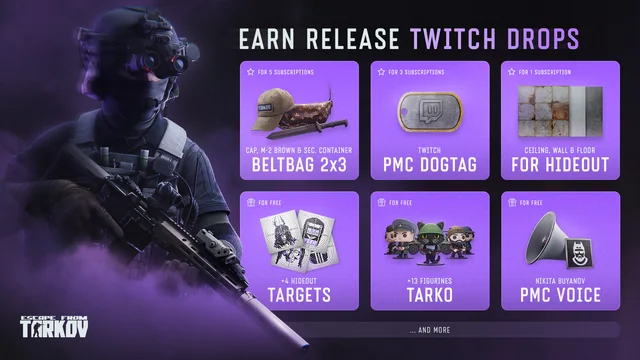 سیستم جوایز کمپین Twitch Drops در Escape from Tarkov به دو دسته تقسیم میشود: جوایز رایگان و جوایز ویژه اشتراک پولی. با پرداخت اشتراک و حمایت از استریمرها، بازیکنان میتوانند آیتمهای بیشتری کسب کنند: