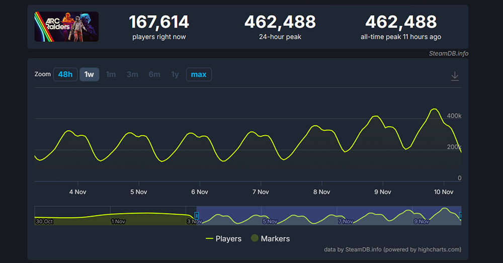 با توجه به این روند، احتمالا بازی Arc Raiders بهزودی رکورد ۵۰۰ هزار بازیکن را هم پشت سر خواهد گذاشت. هنوز چندین رویداد فصلی دیگر در سال جاری پیش روست که از جمله آنها میتوان به اضافه شدن شرایط آب و هوایی جدید به نقشهها اشاره کرد که میتواند علاقه بازیکنان را حفظ کند. علاوه بر این، با نزدیک شدن به تعطیلات پایان سال، فرصت مناسبی برای ادامه رشد بازی ایجاد میشود.