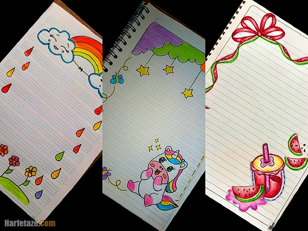 بهترین طرح های دیزاین حاشیه دفتر دیکته با نقاشی های ساده و زیبا