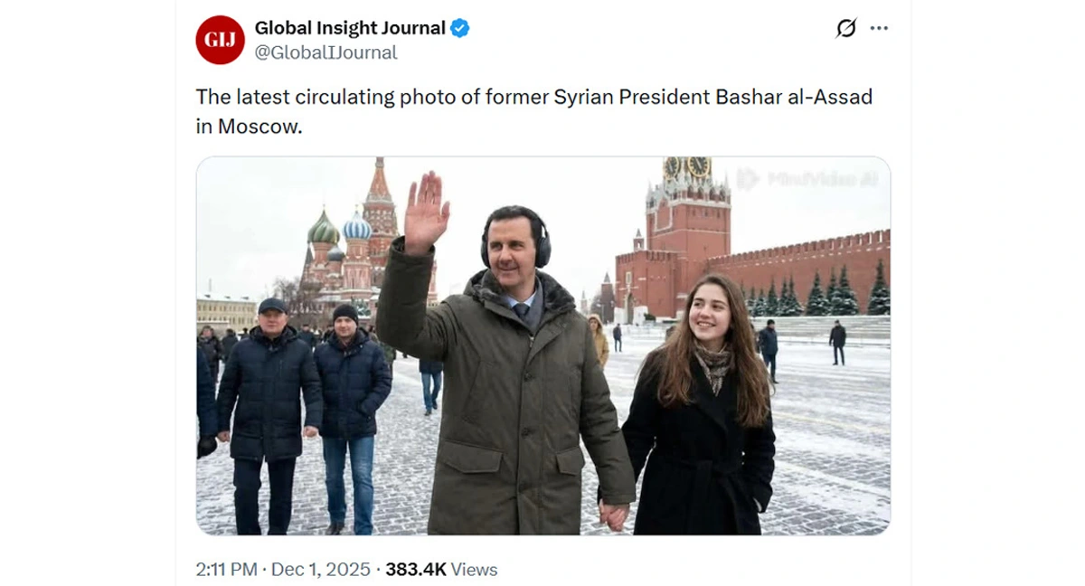 در روزهای اخیر تصویری در شبکههای اجتماعی منتشر شد که به «اولین حضور بشار اسد، رئیسجمهور پیشین سوریه، در میدان سرخ مسکو» نسبت داده شده بود. این تصویر صدها هزار بازدید و واکنش در پلتفرمهای مختلف به همراه داشت و با توضیحاتی مبهم دستبهدست شد.
