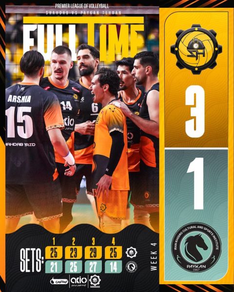 شهدابیها در ست چهارم با برتری قاطع ۲۵ بر ۱۴ به کار رقابت پایان دادند تا با نتیجه ۳ بر ۱ چهارمین برد متوالی خود را جشن بگیرند و همچنان در صدر جدول باقی بمانند.