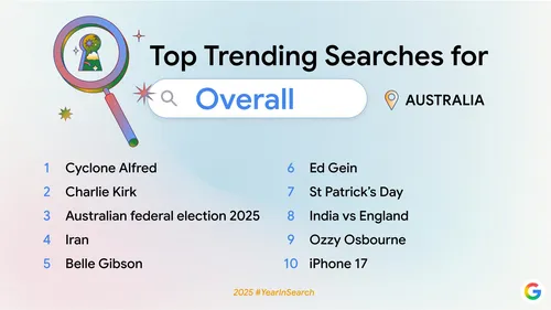 گوگل طبق سنت هرساله، گزارش «سال در جستجو» (Year in Search) خود را منتشر کرد و نام ایران به عنوان یکی از داغترین موضوعات در فهرست محبوبترین جستجوهای گوگل در سال ۲۰۲۵ در سطح جهان درخشید.