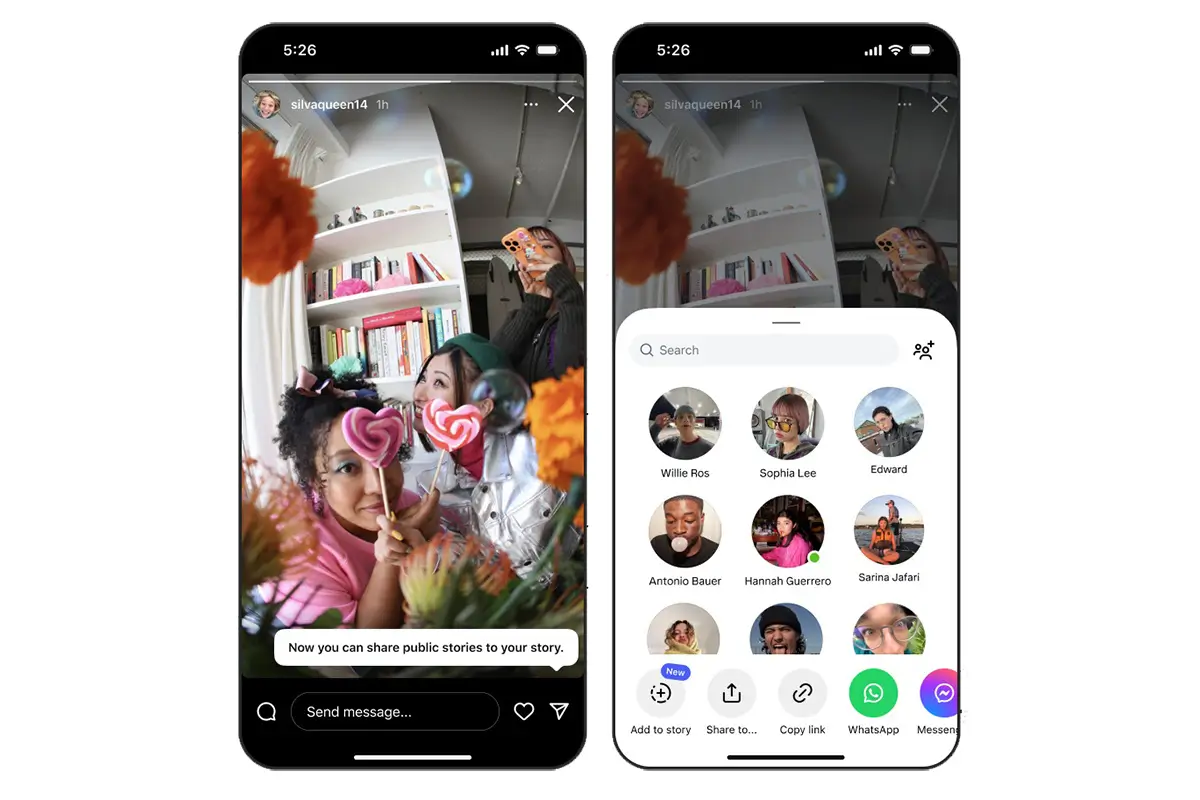 این شبکه اجتماعی با اضافهکردن امکان «بازنشر استوری»، یک قدم دیگر به سمت تبدیلشدن به پلتفرمی شبیه توییتر (X) و تیکتاک در حوزه بازنشر محتوا برداشته است. از این پس، با یادگیری نحوه استوری کردن استوری دیگران، میتوانید تقریباً هر استوری اینستاگرام منتشرشده توسط یک حساب عمومی را حتی اگر در آن تگ نشده باشید به استوری خود اضافه کنید. البته در این حالت نام منتشرکننده اصلی به طور خودکار در بالای استوری مشخص خواهد بود.