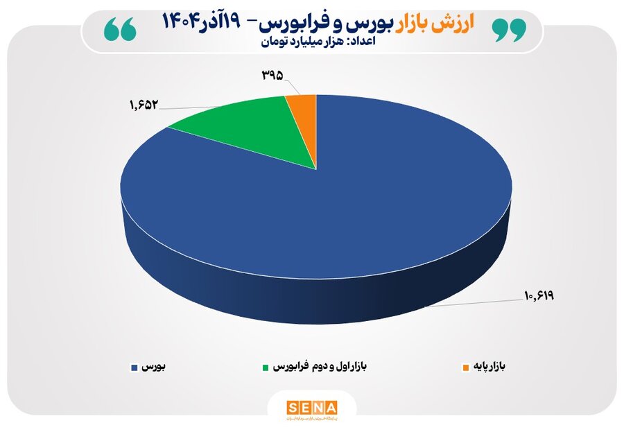 فصل اقتصاد – مجموع ارزش بازارهای سهام ایران، شامل: بورس، فرابورس و بازار پایه در پایان معاملات امروز چهارشنبه 19 آذر 1404 از مرز 12 هزار و 500 همت (هزار میلیارد تومان) نزدیک شد.
