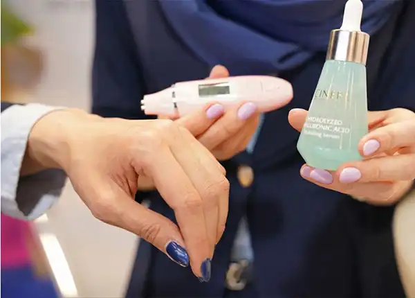 سینره امسال به جای تبلیغات مرسوم، بازدیدکنندگان را در برابر یک «تست رطوبتسنجی پوست» قرار داد! در غرفه این برند، دستگاههای پیشرفته آنالیزور تعبیه شده است که وضعیت هیدرولیپیدی (رطوبت و چربی) پوست را قبل و بعد از مصرف آبرسانهای جدید سینره میسنجند. نتایج ثبت شده روی مانیتورها نشان میدهد که فرمولاسیونهای جدید این شرکت قادرند در کمتر از چند دقیقه، سطح رطوبت و الاستیسیته پوست را به طرز معناداری ارتقا دهند.